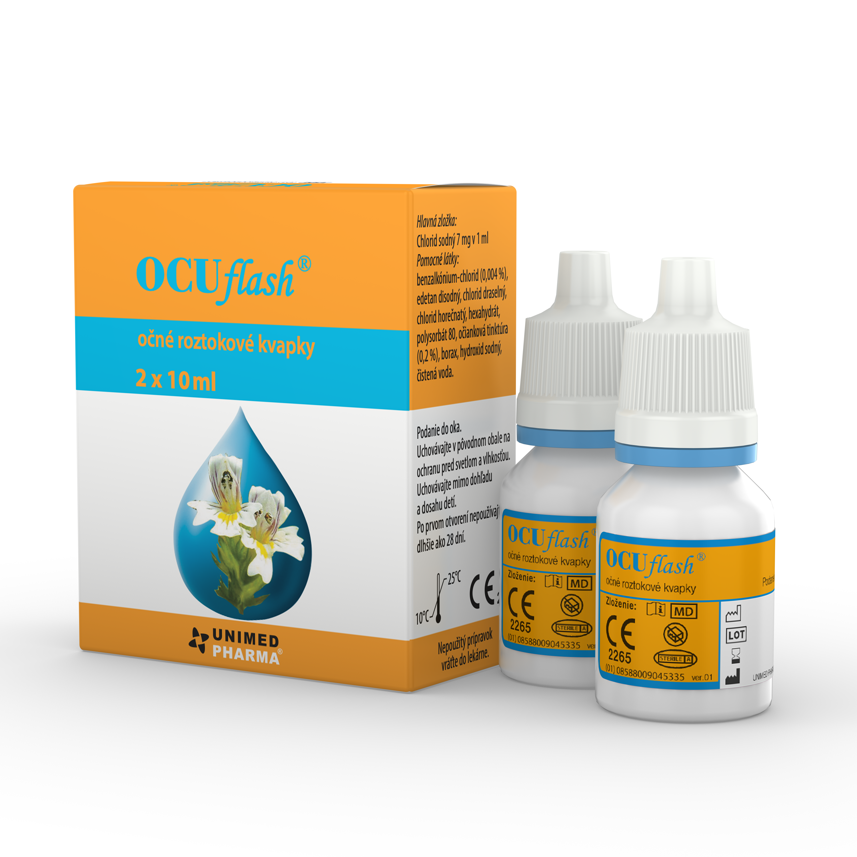 OCUflash® pôsobí v oku protizápalovo, dezinfekčne a sťahujúco. Je vhodný na prevenciu a podpornú liečbu neinfekčných zápalov viečok a spojoviek a na upokojenie podráždených očí. Vďaka svojej bezpečnosti je vhodný aj pre novorodencov, dojčatá, tehotné a dojčiace ženy.